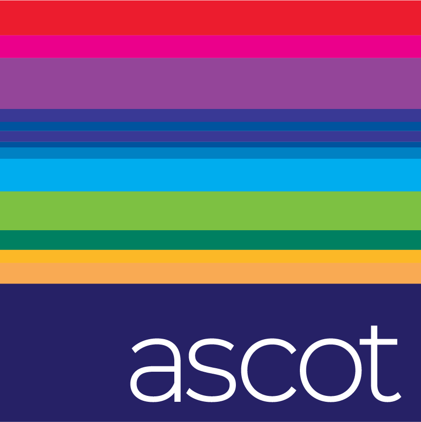Ascot called on me just after the Millennium, and I’ve worked for them for the 20+ years since. I came up with the idea of their multicoloured logo, inspired by the vibrant modern art in their office. (A visual not a verbal idea, just for once.)